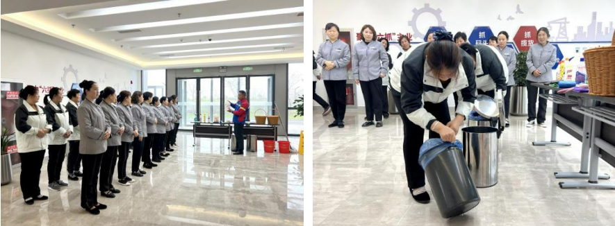 培训现场通过手把手教、一对一带,紧盯员工专业技能的短板、漏洞、弱项,系统全面地将常用操作流程、特种设备保养等专业保洁技能进行讲解和示范。通过更规范、专业、高效的工作方法,强化员工职业技能,提升物业服务水平。