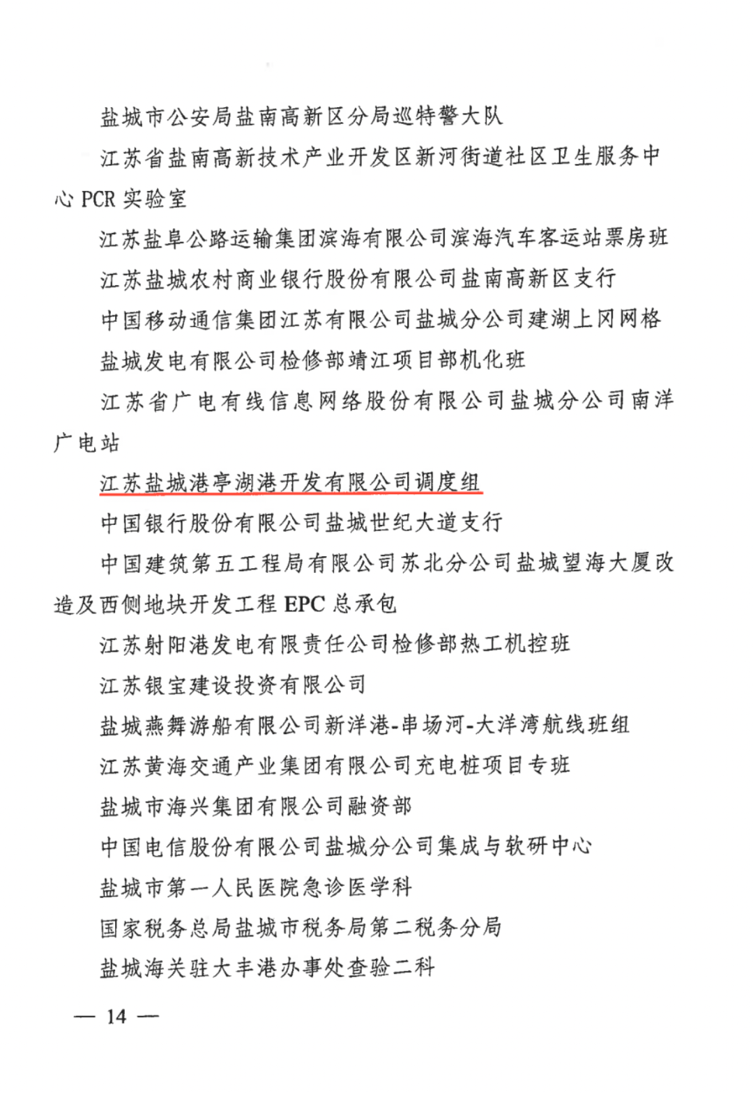 荣获“盐城市五一劳动奖章” 江苏a片免费看亭湖港开发有限公司调度组