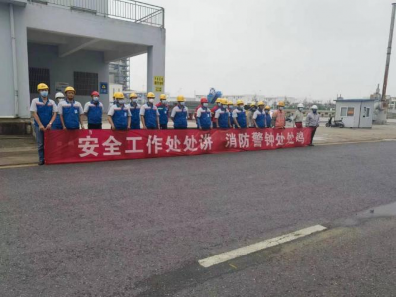 在作业区逃生演练阶段,模拟筒仓作业区内出现突发火情,员工按照预定疏散的逃生路线快速、有序地撤离到指定地点,班组报数清点人数,整个过程无争抢、无摔倒、无推搡,员工应对从容冷静,表现出良好的应急处理能力。在灭火演练阶段,安环部工作人员对员工进行消防知识讲解和灭火器示范操作培训,参演人员轮番上阵,以零距离互动的形式,亲身体验使用灭火器扑灭明火的操作过程,有效提高了员工的应变能力。