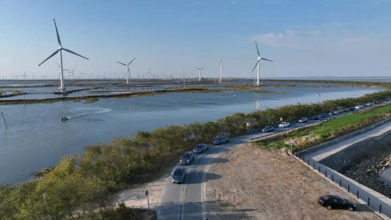 随后,车主们来到了日出海湾,这里是大丰观海廊道上的最佳景观打卡点,也是游客近距离观海、亲海、赶海的绝佳地点。车主们带着家人漫步于此,看着远处的夕阳西下,呦呦鹿鸣不时在耳畔回响,听潮起潮落,感受潮间带文明的神秘多姿,远离城市的喧嚣,回归自然的宁静。