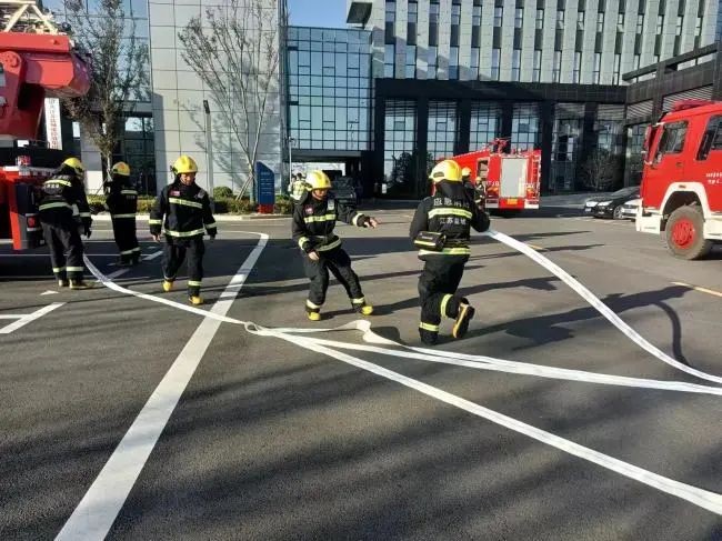 本次应急演练活动分为消防器材展示介绍、灭火器材使用讲解、灭火疏散实操演练三个环节。演练前,大丰港区消防中队指导员对各类消防器材进行介绍,对灭火器材的性质结构、适用范围、使用方法、日常维护进行了详细示范讲解,为员工全面科普消防安全知识。随后,演练现场模拟档案馆二楼发现火源,通过消防预警、紧急疏散、灭火实操、应急救援等步骤快速组织、有序衔接、密切配合,最终成功将火源扑灭。公司员工纷纷表示,通过此次消防灭火应急演练不仅提高了消防安全意识,还增强了对突发火情的应变疏散、自我防护、自救互救能力,为筑牢消防安全生产防线打下了坚实的基础。