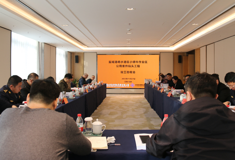 本工程位建设1个2万吨级重件泊位(水工结构兼顾5万吨级船舶)及相应配套设施,码头前沿设置一台最大起吊能力达1200吨的固定桅杆式起重机,是目前江苏沿海港口起吊能力最大的专用重件码头。码头功能定位为以风电重、大件货物为主,兼顾钢材等件杂货,设计年通过能力75万吨。此次竣工验收现场核查组由连云港海事局灌河海事处、连云港海事局响水海事大队、盐城市交通运输局、盐城市交通运输综合行政执法支队、响水县交通运输局、盐城市响水工业经济区管委会等相关部门代表及5名特邀专家组成。在验收会上,核查组认真听取了项目参建单位的汇报,对工程实体建设情况做出了综合评价,经会议讨论,一致同意该工程通过竣工验收。