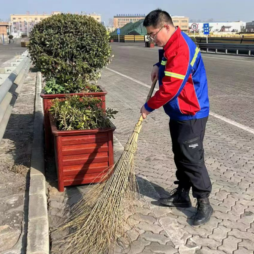 他们手拿铁锹 肘夹扫把 急吼吼往前赶
