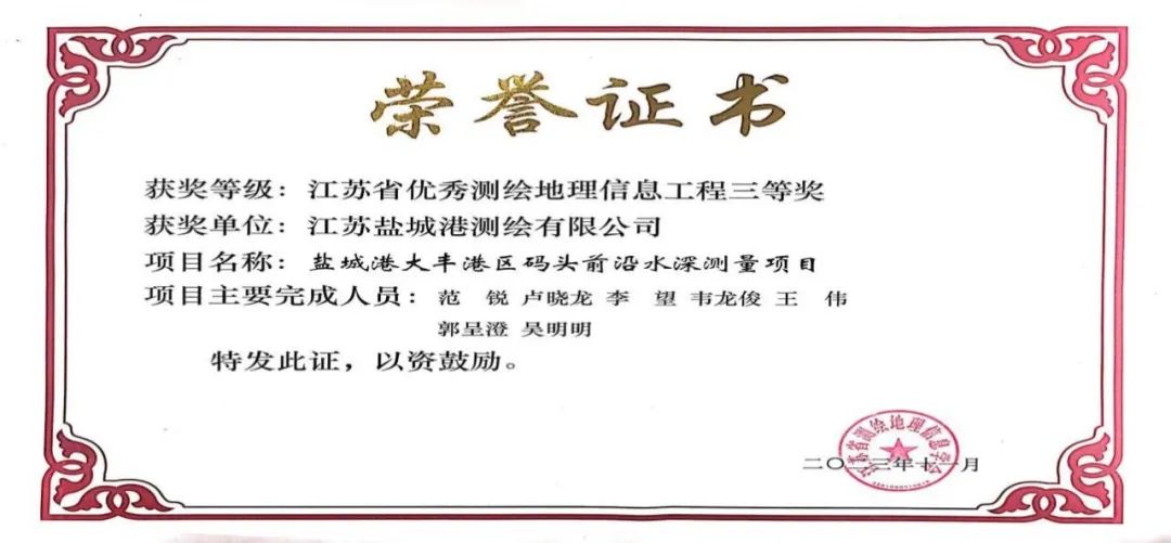 近日,江苏省测绘地理信息学会公布2023年度江苏省优秀测绘地理信息工程获奖名单,a片免费看大丰港区码头前沿水深测量项目荣评2023年度江苏省优秀测绘地理信息工程三等奖。