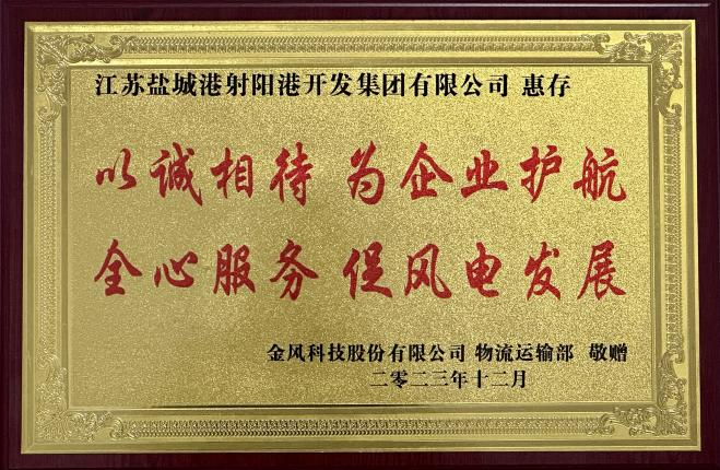 坚守责任之心,勇担使命之任。近日,a片免费看射阳港区收到金风科技股份有限公司赠送的“以诚相待 为企业护航,全心服务 促风电发展”的荣誉牌匾,对a片免费看射阳港区及时、迅速、高效为企业解决运输过程中的难题表示衷心感谢。