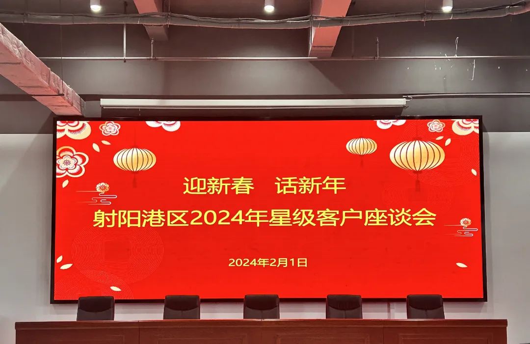 2月1号,射阳港区召开星级客户企业座谈会,邀请了盐城天成智联管理有限公司、江苏文辰供应链管理有限公司等20多家星级客户代表参加。