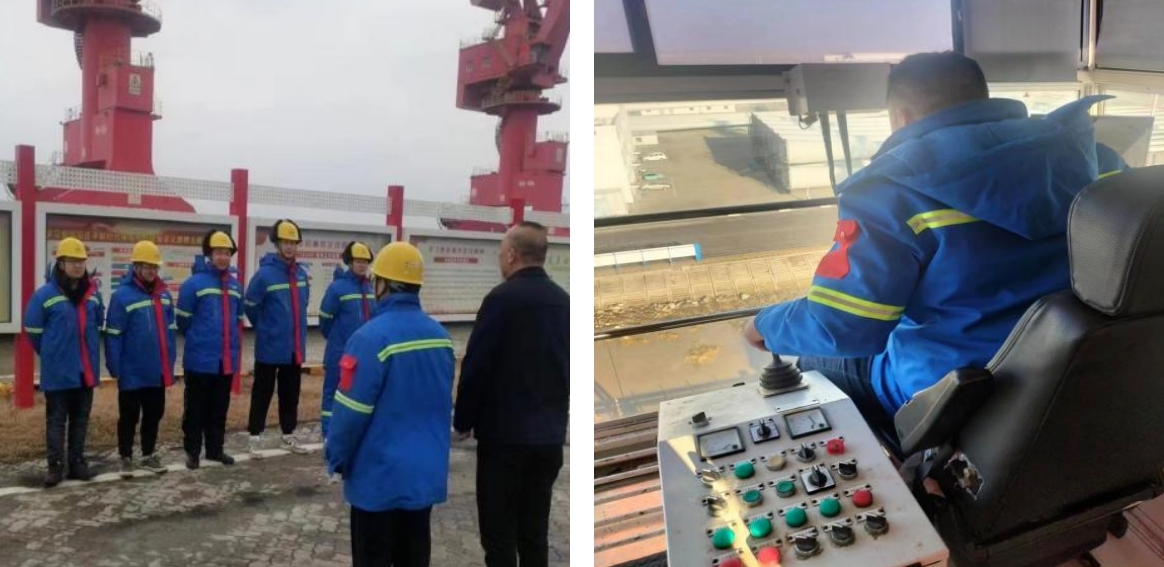 射阳港区风电先锋队以高昂的干劲、火热的激情按下从“假期档”切换到“工作档”的加速键,从检查大车行走机构、轨道轮胎,到机械、电气制动系统再到安全装置,成员们严格按照规范操作流程完成点检后登上驾驶室,熟练操控操作杆,紧盯着煤炭抓斗提升、回转、下放,紧绷心神、一气呵成,以“满弦”姿态吹响新年奋进号角,奏响龙腾虎跃的青春之歌。