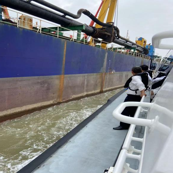 (艇作“的卢”飞快,技如“霹雳”炫睛,引航艇拉着引航员赶往巨轮所在)