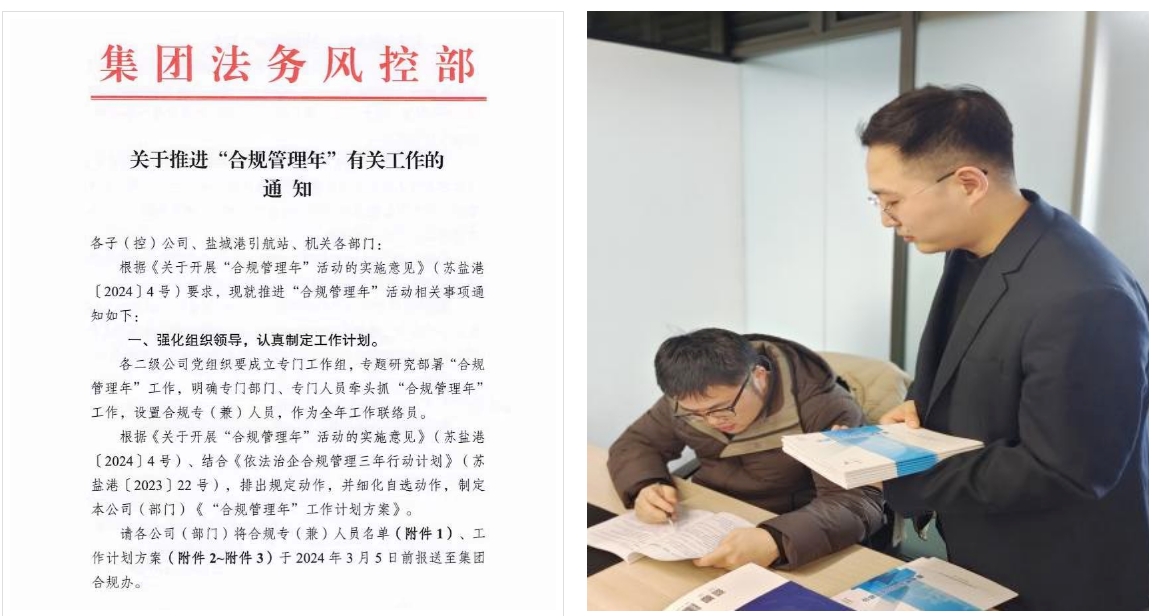 2024年“合规管理年”活动是集团党委一届五次全体(扩大)会议确定的年度主题,也是对2021年作风建设和强基固本年、2022年经营兴航和改革攻坚年、2023年项目立航和提质增效年的延续和深化。集团深入开展“合规管理年”活动强化纪律净航领导小组办公室紧紧围绕集团党委有关“合规管理年”活动重要决策部署,统筹谋划,分步骤、分领域推动“合规管理年”活动走深走实。