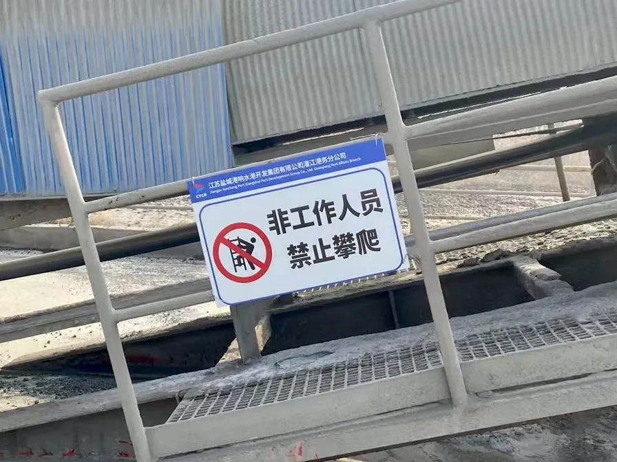 在港区门闸处设置“非作业车辆、工作人员禁止入内”标识,提示社会人员、车辆不要误闯误入港区。在引桥栏杆上悬挂“注意路口,当心货车”“禁止酒后上岗,必须戴安全帽”等标识,提醒工作人员注意自身安全,严肃上岗纪律;在码头后沿护栏上悬挂“禁止翻越”“水深危险,禁止靠近”,警示工作人员不要翻越码头护栏,远离危险水域。本次完善新增警示标识牌共十余块。