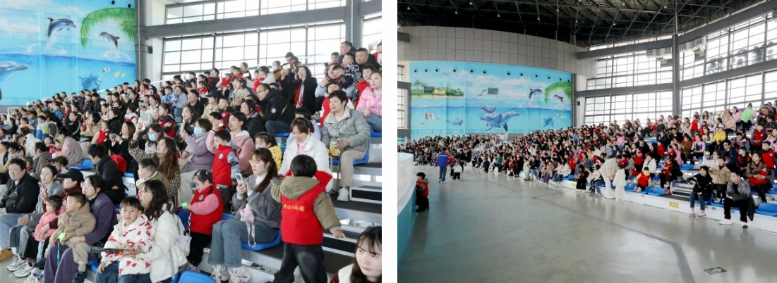 在港泊半岛酒店用餐完毕后便启程来到海洋世界景区。在海洋世界景区,海豚们用跳跃、遨游等方式欢迎客人们的到来。伴随着饲养员的指令,海豚们与驯养师亲密互动、默契共舞,唯美动听的天籁之音无不展示着这群水中精灵的天赋,让家长和孩子们流连忘返。