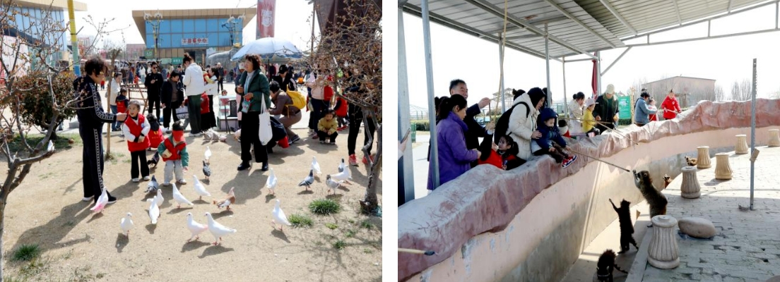 在大丰港区动物园内,孩子们兴奋地喂着鸽子,逗着小浣熊,骑着大马,围着长颈鹿,各种动物的表演引得孩子们阵阵欢笑,家长们为之驻足拍照。
