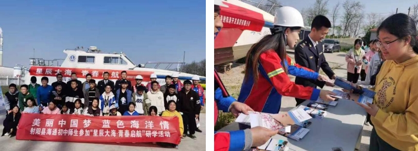 本次“港口开放日”活动,射阳港区精细部署,积极对接相关单位,组织海通中学学生代表参观射阳港码头和作业区,现场发放港区宣传册,详细介绍港口发展进程与现状;随后乘坐海巡0616轮、海巡16505轮,在射阳港区码头航道区域巡航,向同学们讲解航道保障和通航安全知识,全面展示港口形象和发展成就。