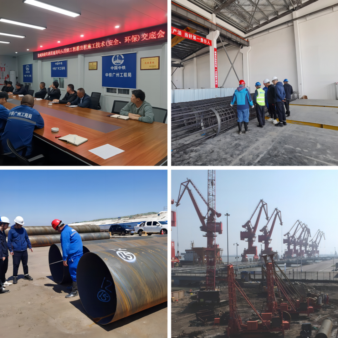 灌注桩作为项目关键施工工序,射阳港区和项目咨询公司结合工程实际情况,精心组织、周密部署,在施工准备阶段注重与施工单位的沟通协调,加强质量安全监督和管理;通过召开专题会议优化施工方案、调整施工部署,与各参建单位做好机械设备验收、安全管理等工作,全力保障灌注桩施工平稳有序进行。