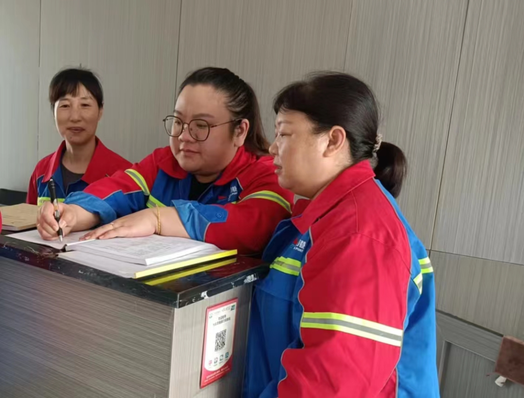 木兰班组在完成生产任务的同时,见缝插针地给班组成员“充电”,班组把集团相关制度作为重要学习内容,纳入班组学习范围,武装头脑、指导实践、推动工作。并对新修订的《岗位操作规程》《安全管理制度》、近期事故案例等内容进行了认真学习,夯实安全基础知识,筑牢安全底板。