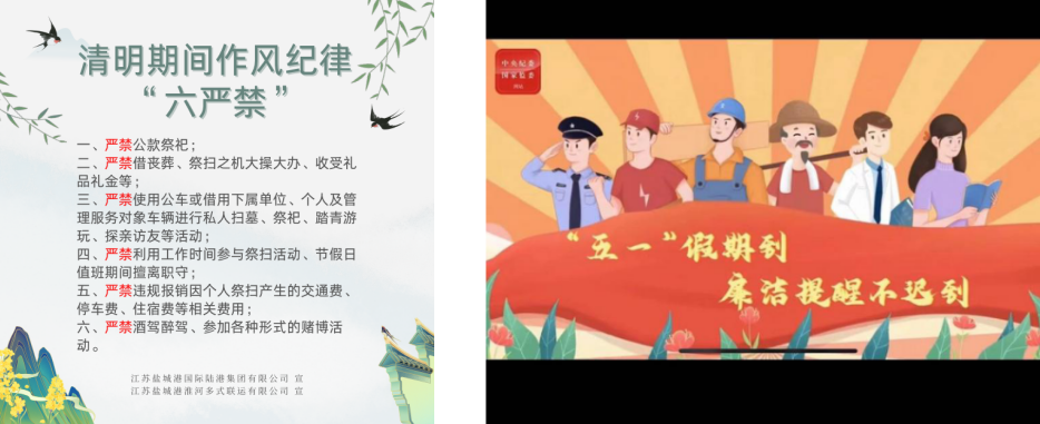 微信提醒送廉。在节假日前将严禁公车私用、严禁大操大办、严禁收受礼品礼金等纪律要求设计制作成《节日期间作风纪律“六严禁”》海报,利用手机微信等平台,发布中纪委节前廉洁提醒动画,同时以短信形式为干部职工送上廉洁过节温馨提示。一张海报、一个动画、一条短信犹如一缕清风,通过“润物无声”的关怀与警醒,营造了风清气正的节日氛围。