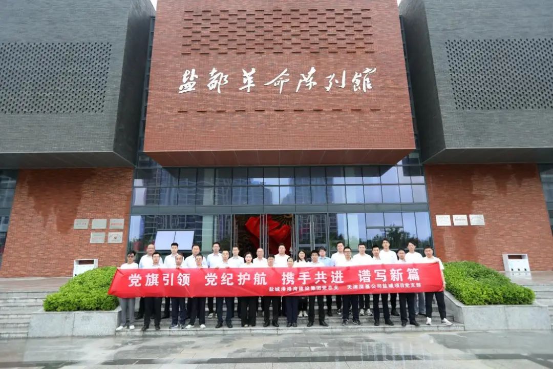 “我志愿加入中国共产党,拥护党的纲领,遵守党的章程,履行党员义务,执行党的决定,严守党的纪律……”6月29日,港湾建设集团与天津深基公司盐城项目党支部的党员共同佩戴党徽、举起右拳,在盐都革命陈列馆内重温入党誓词,用洪亮的声音、激昂的语气,表达了牢记初心使命,践行为共产主义事业奋斗终身的决心和永葆共产党员政治本色的信心。