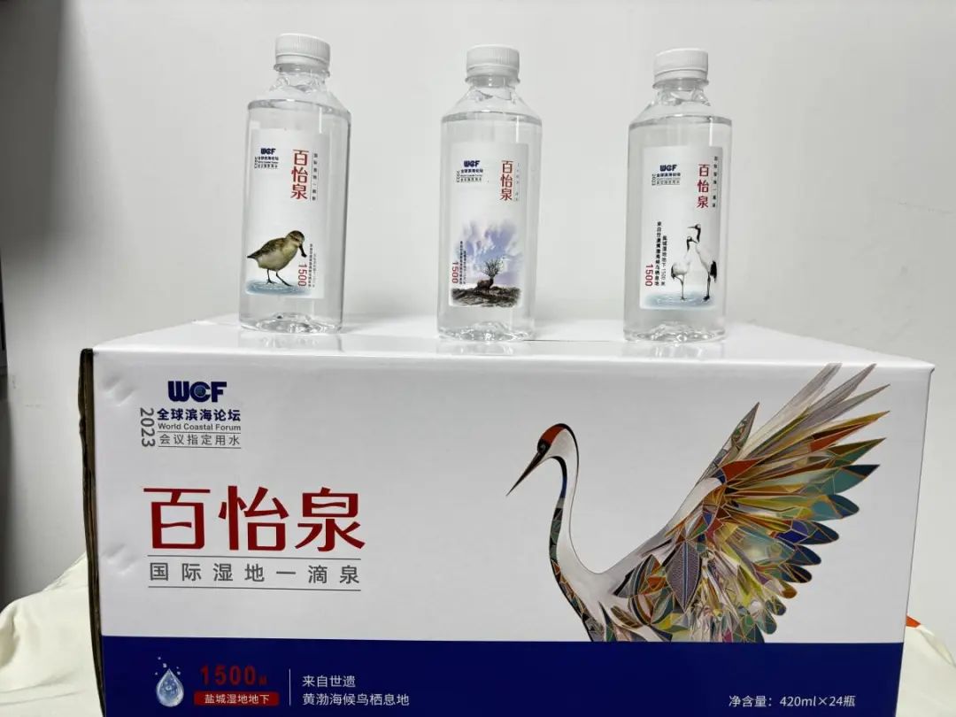 此次入选的420ml商务款饮用水是与始之泉食品公司合作共同研发设计的一款商务高端产品。产品三个独特的包装设计,灵感来源于大丰湿地的吉祥三宝——‘麋鹿呦呦’象征着和谐共生,‘丹顶鹤鸣鸣’寓意着吉祥如意,‘勺嘴鹬嘟嘟’则展现了自然生态的灵动之美。它不仅融合了盐城湿地自然保护区的纯净水源与丰富矿物质,还体现了对品质的极致追求。