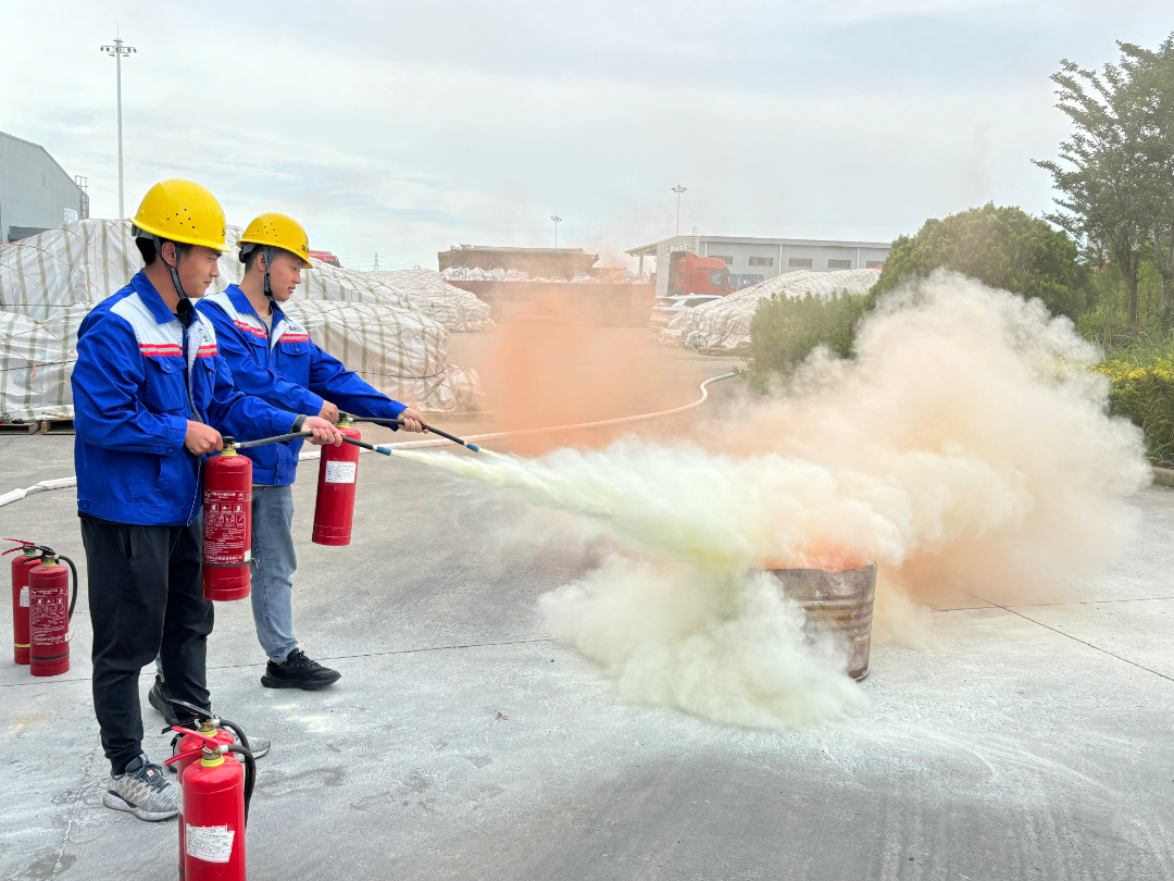 培训结束后,立即组织开展了疏散逃生应急演练。本次演练模拟库区因电路老化,发生短路,从而引发火情。演练过程中,参演人员保持沉着冷静、互相合作,行动有序,本着时间就是生命、纪律就是保障的原则,以最好的秩序,按照“捂住口鼻、压低身体、靠墙走”的逃生要领,快速、有序撤离到安全地带。疏散演练完成后,各部门人员进行了消防器材使用演练。参演人员迅速轮番拿起灭火器,拔掉安全插栓,站在上风口,对准火源根部进行实操灭火。整个演练过程组织有序、分工到位、有条不紊,达到了预期的演练效果。