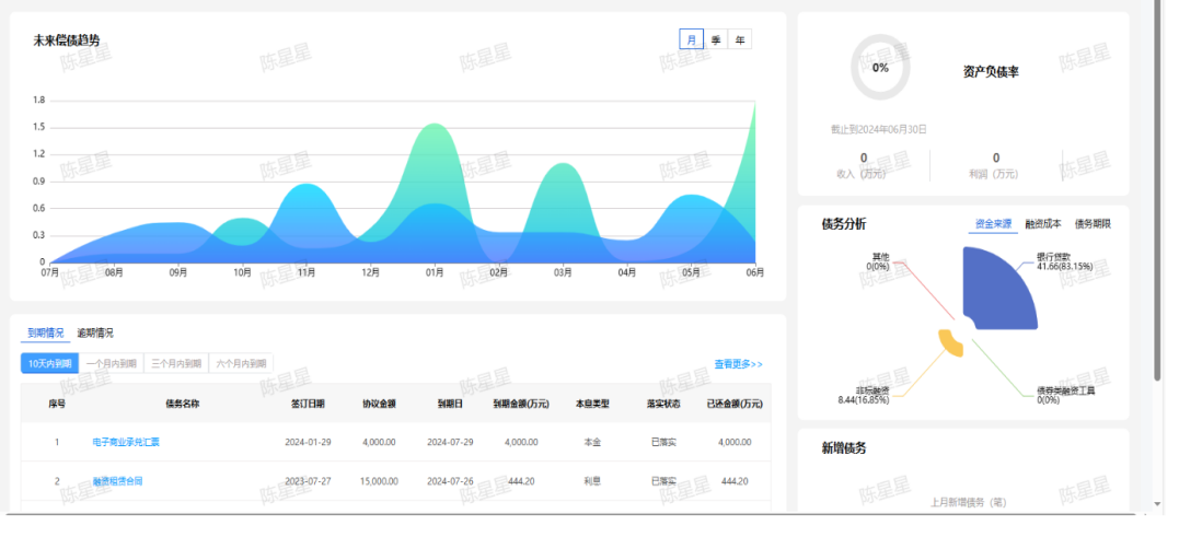 为实现财务标准化,每一笔融资发生后,第一时间将贷款的所有数据更新至系统,实现每一笔还款无遗漏,保证资金还款的安全性。同时,系统可生成债务结构,通过直观的饼状图显示,了解港区的债务情况,及时作出合理提款计划,调优融资结构。