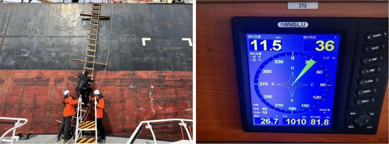 在阵风7级的影响下,引航员艰难地攀爬引航梯登上了引航船舶,通过对现场水文天气环境的观察,结合自身经验,抓住阵风窗口期,开启船用雷达,实时监测航道有无碍航物及过往船只,并要求船方备妥双锚和主机,以应对潜在安全风险,引航员不断在船舷和驾驶室内来回跑动观察,加强瞭望,及时利用高频与海事部门、拖轮以及码头人员进行沟通联系,安全地完成了本次引航靠泊任务。