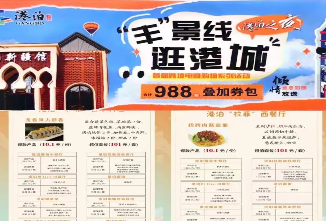 港泊酒店管理分公司旗下餐饮门店位于跨境电商园内,餐饮店铺汇集了各地美味佳肴,有湘菜馆、日料餐厅、海鲜馆、新疆馆、泰国餐厅、茶餐厅、西餐厅、中餐厅等。
