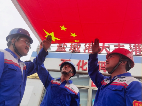 盐港人与国旗同框