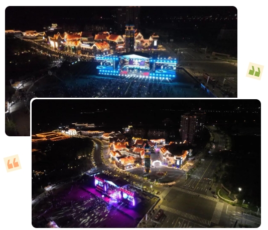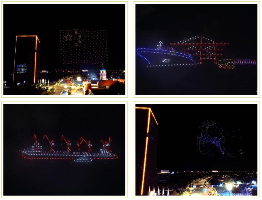 夜幕徐徐降临,500架无人机同时升空,一场主题庆祝新中国成立75周年的无人机灯光秀正式开演。借用科技编程语言,叙述着盐城从过去到未来的辉煌巨变,时而变化成湿地精灵,时而演变成现代大港,时而汇聚成鲜艳的五星红旗,这不仅是一场视觉的盛宴,更是对新中国成立75周年的深情祝福。精彩的表演引得来自周边的游客情不自禁地拿起相机,定格眼前的美好。