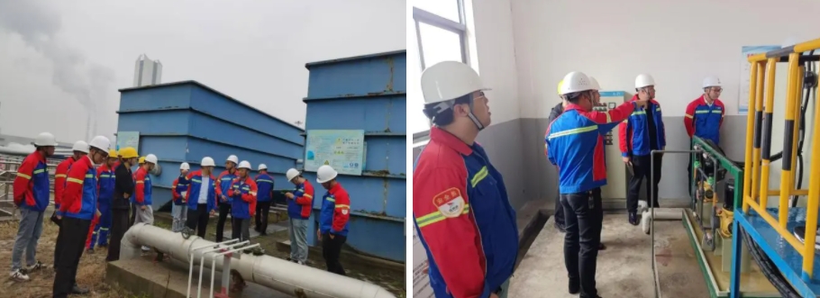 “初期雨水经码头和堆场收集管网流至污水处理站的3个收集池,通过抽水泵进入净水器,管道中由加药泵房加入絮凝剂,使废水中悬浮物治理效果更好,经紫外线消毒流入净化水蓄水池,使用污水处理泵站增压用于堆场喷淋和消防用水。”污水站操作员一边演示一边向大家介绍,“我们加药搅拌池按照1.5吨水配75KG聚合氯化铝絮凝剂的比例,可处理1500T污水,配比是1:1000”