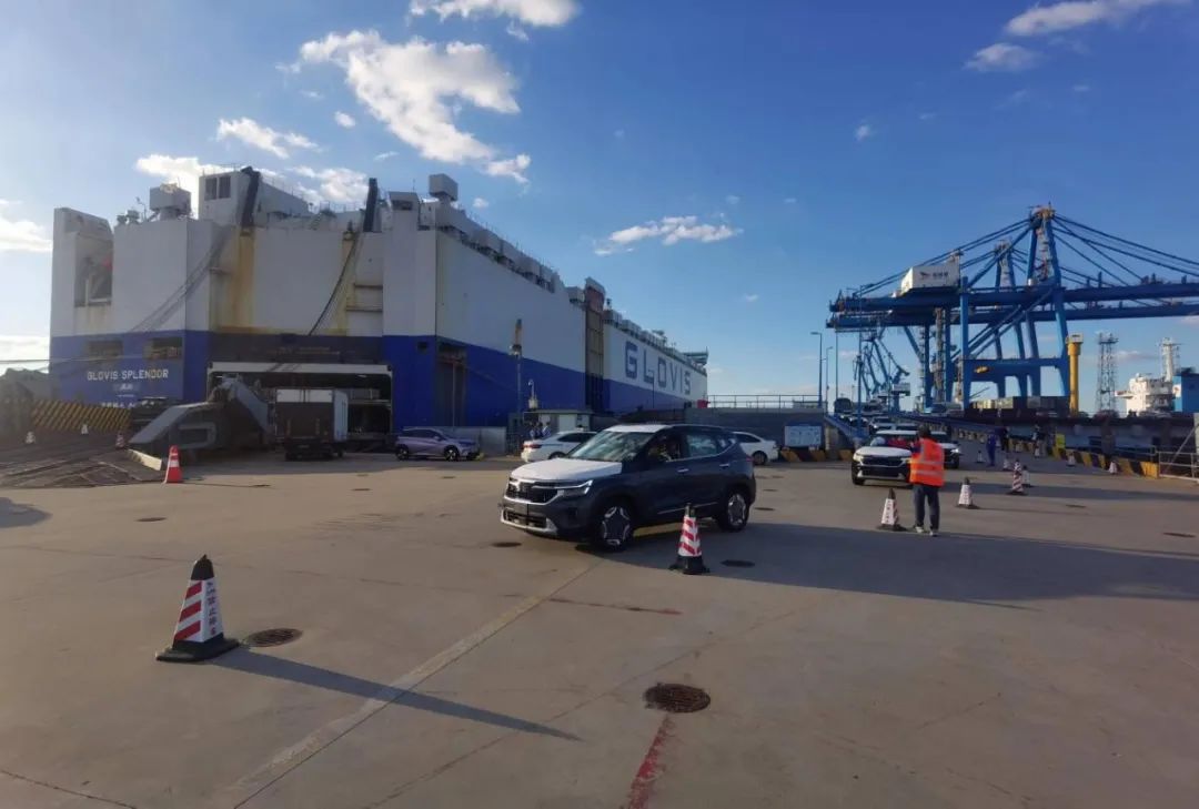 进入大丰港区滚装码头作业现场,一幅热火朝天的画面跃然眼前。商品车正一辆接着一辆有序地驶向船舱,这是党员先锋队带领职工们在进行紧张的装船作业。党员率先垂范,端坐在驾驶室内,双手紧握着方向盘,目光坚定而专注。每一次转动方向盘,都仿佛带着使命的力量;每一次踩下油门或刹车,都精准无误。他们凭借多年积累的精湛技术和丰富经验,操控着车辆稳步前行,哪怕是细微的角度调整,都力求完美,只为让车辆准确无误地停放在既定位置。