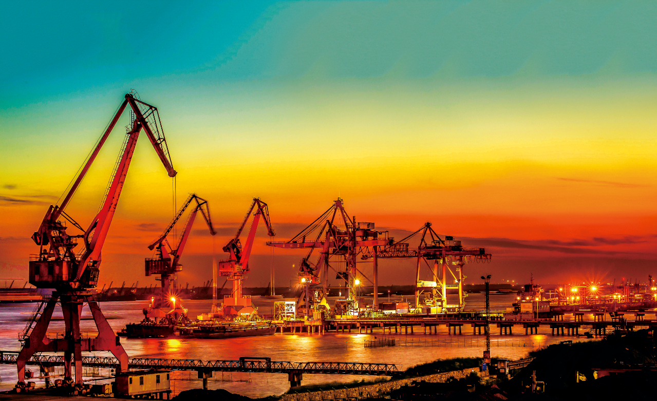 国家综合交通枢纽连云港形成“一体两翼、一港四区”组合大港格局,拥有30万吨级深水航道和原油码头,万吨级泊位达85个,与160多个国家和地区近千个港口开展贸易运输往来。