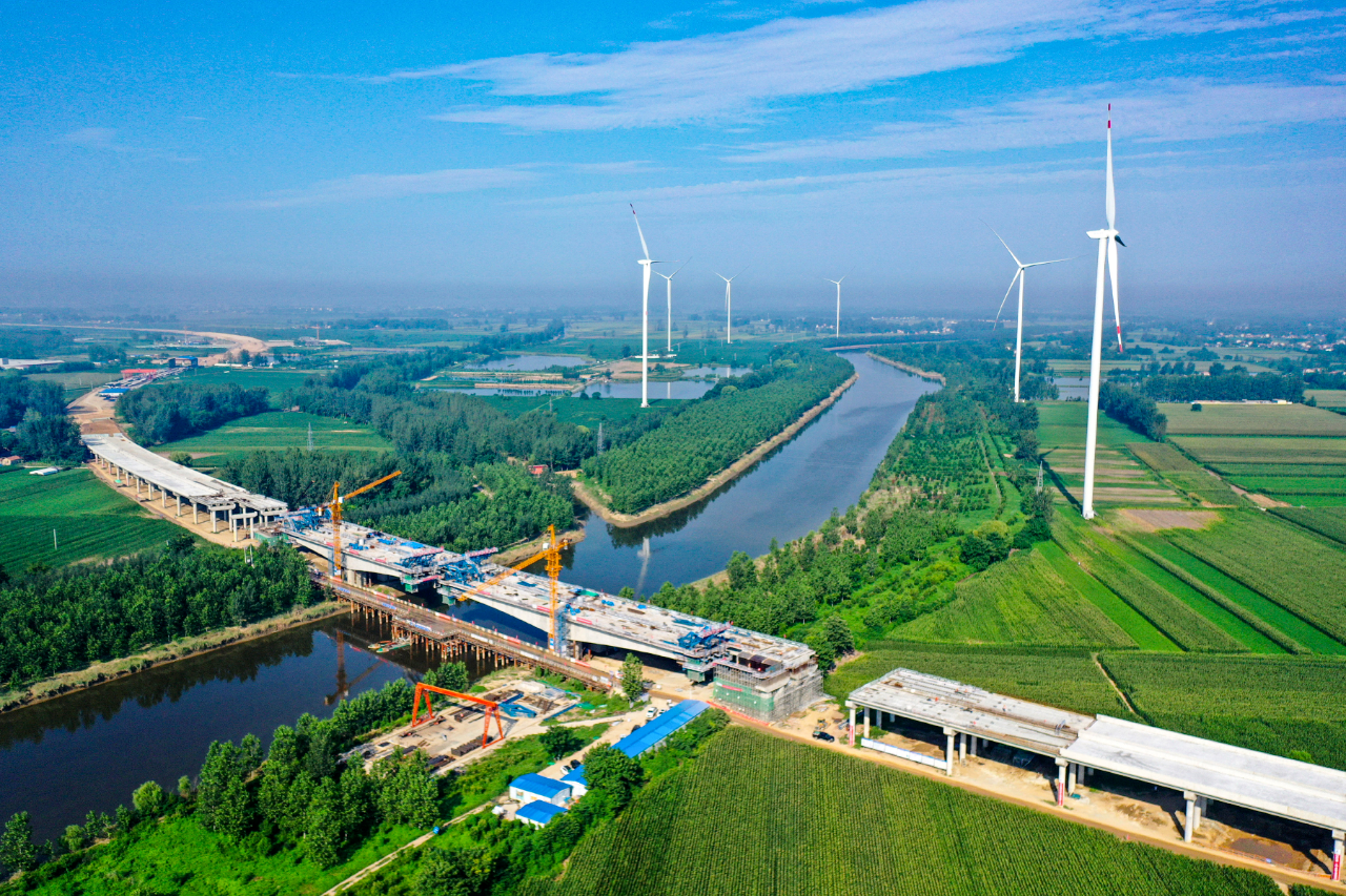 ▲ 淮阜高速淮北段项目沱河特大桥施工正酣