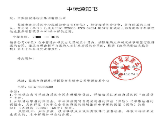 金秋十月,硕果累累,a片免费看物业公司成功中标盐城幼儿师范高等专科学校物业服务项目,在盐城大市区外拓市场中实现新突破!项目新增“宿管”“安全员”等服务内容,总服务面积12余万平方米,中标金额200余万元,为在管项目领域再添新业绩!