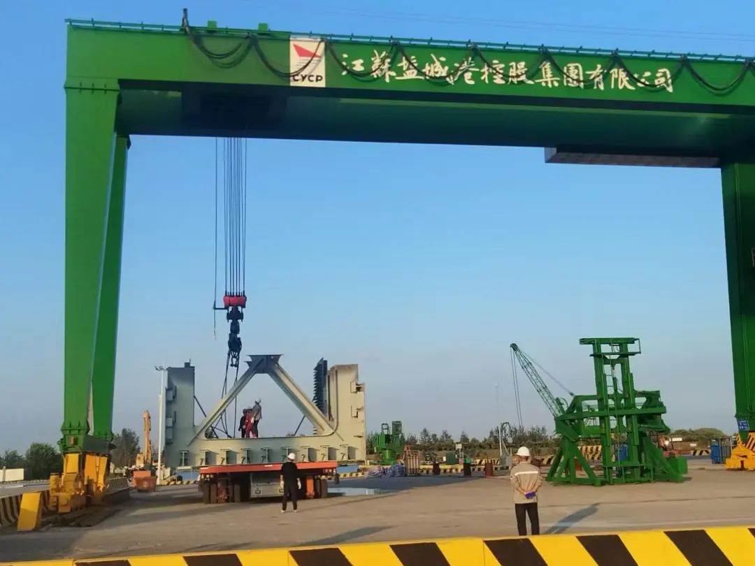 据悉,这组大件从滨富重工厂短驳到阜宁港进行拼接加工后,始发阜宁港,途径东台、泰州,自泰州引江闸进入长江,通过黄浦江进入上海大治河,是建筑桥梁的重要组成结构,整个运输过程较复杂。