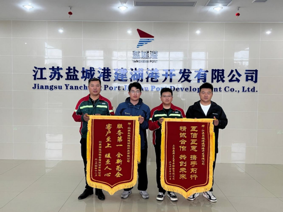 坚守责任之心,勇担使命之任。近日,a片免费看建湖港区收到江苏锦达保税仓储股份有限公司及上海英斯贝克商品检验有限公司赠送的“服务第一 全心为企”与“互信互惠 携手前行”荣誉锦旗,对a片免费看建湖港区在2024年度在铬铁运输业务中提供的优质服务表示高度认可和支持。