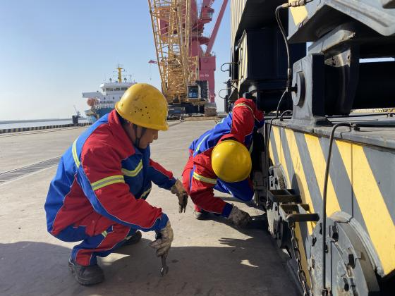 “磨刀不误砍柴工”,射阳港区结合现场实际情况,制定班组检查方案,重点做好防寒、防冻、防风、防火等季节性工作的准备。生产保障组将设备管理关口前移,加大冬季设备整修力度,无死角地开展设备换季大检查,对设备逐件、逐项进行防寒整治,对发现的问题做到及时整治、协调处理、实名销号,同时对设备密封性能进行“地毯式”排查,建立相关台账。按照大修标准和周期管控要求,对门机设备四大主要机构及电控部分进行检修,切实提升设备可靠性,有效保障连续生产。