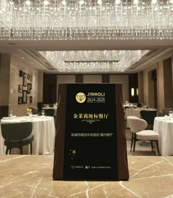 近日,2024 - 2025“金茉莉地标餐厅”评选结果于江苏省餐饮协会金茉莉《光·温暖》主题美食颁奖盛典揭晓。港泊半岛酒店凭借出色餐饮品质、独特文化氛围与优质服务,荣获此殊荣,成为盐城大丰餐饮新亮点。