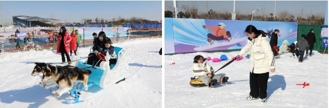 冰雪世界的滑雪场同样洋溢着浓厚的春节氛围,许多家庭选择一起参与冰雪运动,既能锻炼身体,又能增进亲情,实现健康与亲情的双丰收。游客们身着五彩斑斓的滑雪服,在滑雪场尽情体验速度与激情的碰撞。一位游客说道:“春节期间,可以把更多时间留给运动、兴趣爱好。我也特意带孩子体验一下冰雪运动,与雪结缘的春节假期也很有意义。” 滑雪场还特意布置了红灯笼、中国结等充满年味的装饰,让游客在享受滑雪乐趣的同时,也能深切感受到浓浓的年味。