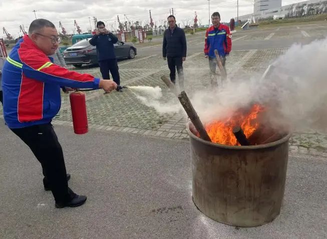 港区联动属地消防专家组织开展消防安全教育培训,培训过程中,消防专家主要围绕火灾应急处理能力、消防基础知识、常见火灾隐患及防灭火重点注意事项等内容进行讲解。培训结束后,立即组织人员开展灭火设备使用模拟演练,进一步提高了职工的消防安全意识和应急处理能力。