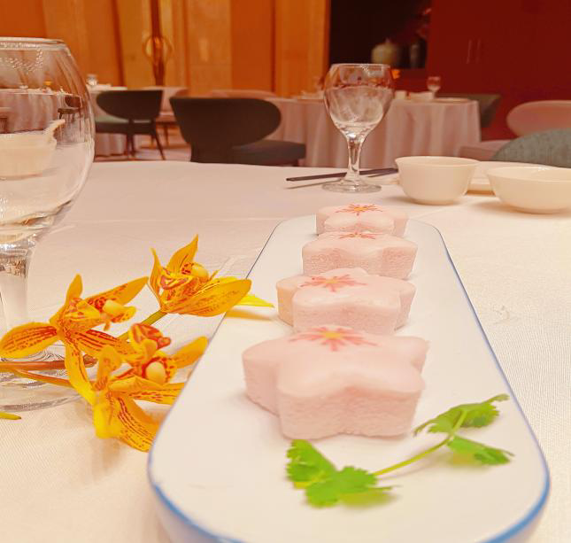 港泊半岛酒店党支部联合餐饮部成立“时令食材研发小组”,深入市场调研,精心挑选春日鲜嫩荠菜、脆甜春笋等应季食材,推出荠菜银鱼羹、春笋菜苔炖鮰鱼等时令新品。同时,为满足不同宾客需求,餐饮团队还推出“春宴主题套餐”,搭配樱花糕、艾草青团等精致茶点。党支部同步推行“透明厨房”党员示范岗,安排支部党员全程监督食品加工过程,确保食品安全,为宾客带来了一场春日的味觉盛宴。