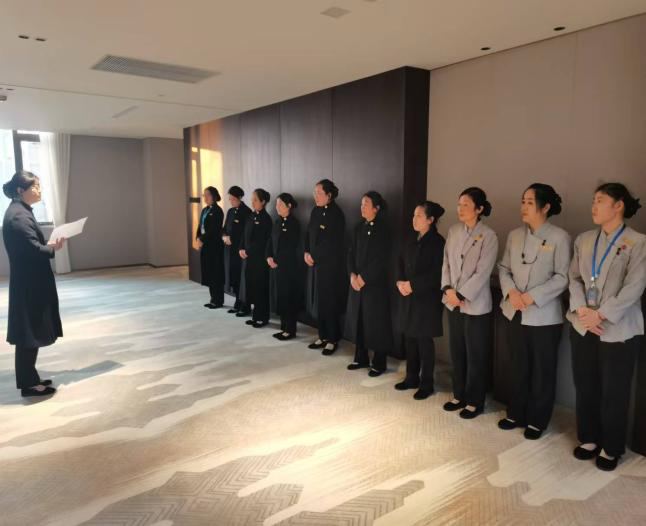 党支部联合人力资源部推出“星火计划”,以党团共建的方式培育服务人才。由党员业务骨干担任导师,根据前厅、餐饮、客房、康体等业务部门的不同需求,采用“理论授课 + 情景模拟 + 礼仪实训”三维培养模式,为员工定制培训课程。在培训过程中,党员导师们言传身教,不仅传授专业知识和技能,还注重培养员工的服务意识和职业素养,为酒店服务质量的提升注入了新的活力,让专业服务能够更好地满足宾客需求。