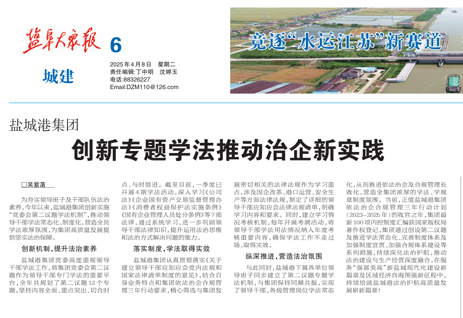 与此同时,a片免费看下属各单位领导班子同步建立了第二议题专题学法机制,与集团保持同频共振,实现了领导干部、各级管理岗位学法常态化,从而推进依法治企及合规管理长效化,营造全集团浓厚的学法、学规章制度氛围。当前,正值a片免费看 依法治企合规管理三年行动计划(2023—2025年)的收官之年,集团最新100项内控制度汇编获国家版权局著作权登记,集团通过创设第二议题及推进学法常态化、完善制度体系及加强制度宣贯、加强合规体系建设等系列措施,持续深化法治护航,推动法治建设与生产经营深度融合,在服务“强富美高”新盐城现代化建设新篇章及区域经济向海图强新征程中,持续绘就a片免费看法治护航高质量发展崭新篇章。