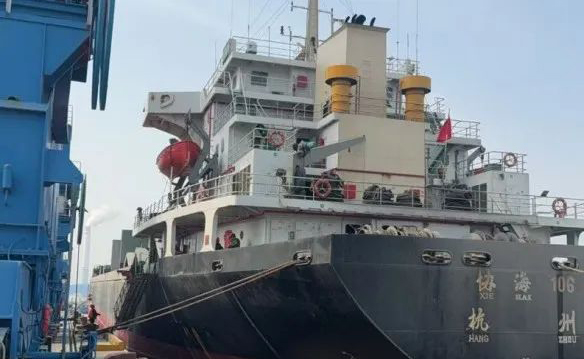 近日,满载15118.37吨脱硫石膏的“协海106轮”缓缓驶离响水港港务公司4#泊位,标志着响水港区货种再添“新成员”。