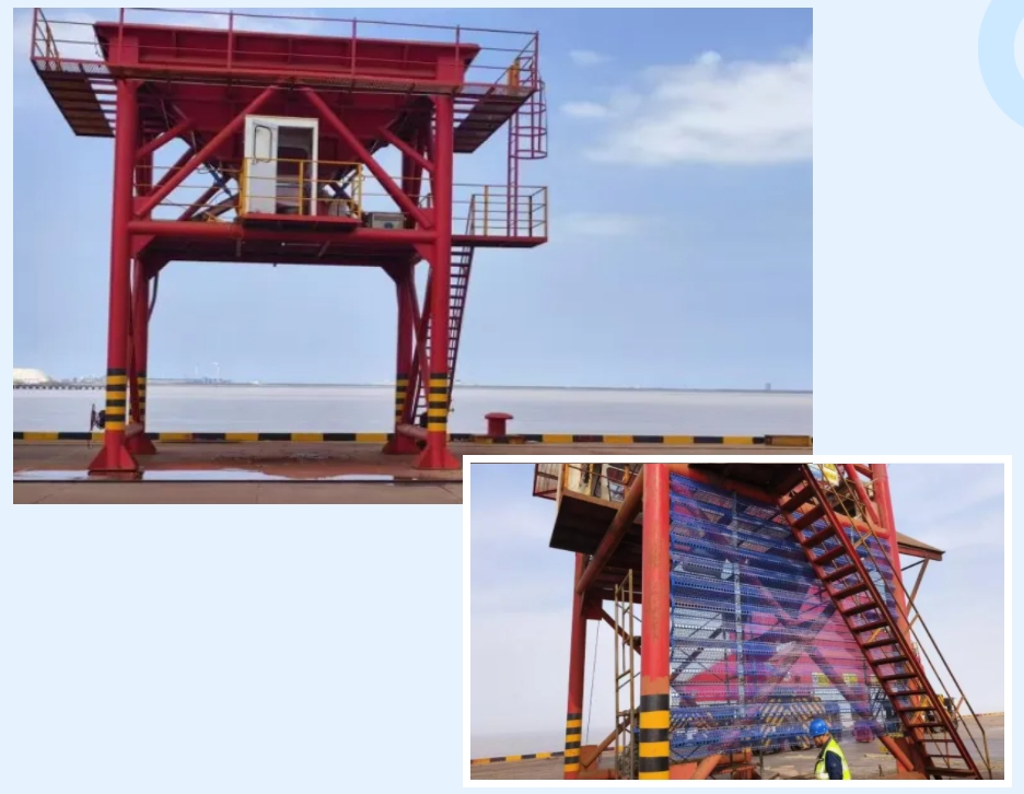 成果展示:该平台结构简单实用,通过循环水系统对进出港口的运输车辆进行全方位冲洗,确保车辆干净整洁,进一步提升运输全程的环保水平,减少车辆带泥上路和扬尘污染。自制洗车平台投入使用后,不仅节省了采购成本,而且减少了50%的道路打扫频次,极大地降低了人力成本。