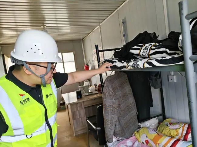 对农民工宿舍开展专项检查,重点查看空调运行、灭火器配置及用电安全情况。目前,所有宿舍均配备独立空调,每间宿舍放置消防器材,并安装漏电保护装置。同时张贴安全用电、消防安全提示,确保居住环境安全舒适。“现在宿舍凉快又安全,休息好了,干活更有劲!”施工项目一名工人称赞道。