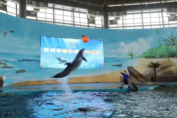 稍作休整后,一行人来到海洋世界,精彩绝伦的海豚表演将活动推向高潮。聪明可爱的海豚在训练师的引导下,完成跳跃、顶球等一系列高难度动作,溅起的水花与孩子们的欢呼声交织在一起,现场变成了欢乐的海洋。随后,众人走进港泊科幻城,沉浸式体验前沿科技带来的震撼与乐趣,在虚拟与现实的交织中,孩子们仿佛置身于未来世界,探索欲与好奇心得到充分满足。