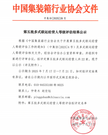 多式联运经营人等级评估由中国集装箱行业协会依据《多式联运经营人基本要求及等级评估指标》团体标准组织开展,该评估从营收、资产规模、多式联运运量等多个维度对申报的企业开展严格的审核,全面评估企业在跨运输方式协同、全程供应链管理等领域的业内水平,是衡量多式联运经营人服务水平和能力的权威依据,其等级评估指标体系也是多式联运经营人不断提升服务质量的引导规范。
