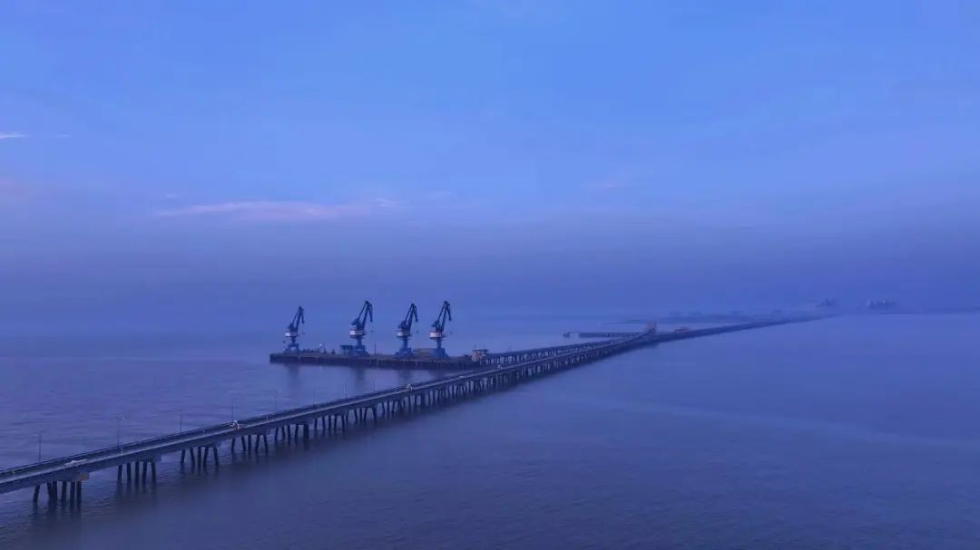 蓝调时刻的美,在于它让工业与浪漫共舞。当夕阳沉入黄海的怀抱,港区的灯塔率先点亮,堆场的集装箱矩阵褪去白昼的灰蓝,渐次染上紫粉的余晖,仿佛莫奈笔下的《干草堆》有了现代工业版;而泊位旁停靠的巨轮,甲板灯火如珠链,与天际残留的钴蓝云霞交织,构成一幅“海上生明月,天涯共此时”的恢宏长卷。