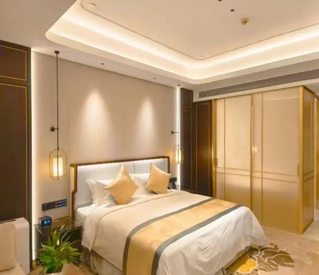 407间雅致客房,30㎡起跳的宽敞格局,是秋日舒展身心的最佳画布。凭窗远眺,花园层林尽染,日月湖碧波映照着高远秋空。2025焕新升级的智能客房,让舒适触手可及:一键切换阅读暖光或安眠模式,智能窗帘开合间,湖光秋色尽揽入怀。