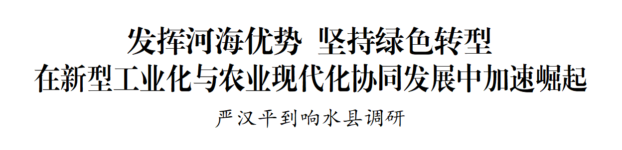8月26日,市委副书记、代市长严汉平到响水县调研,强调要深入学习贯彻习近平总书记对江苏工作重要讲话精神,完整、准确、全面贯彻新发展理念,牢牢把握高质量发展首要任务,放大河海联动优势,做足绿色转型文章,在推进新型工业化与农业现代化协同发展中加速崛起,为全市发展大局作出更大贡献。